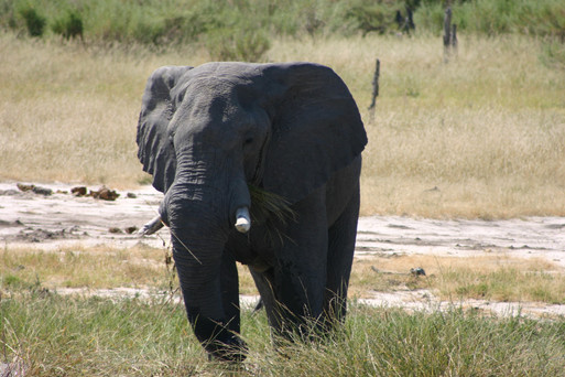 Nous échappons même à notre première charge d’éléphant. Alors que nous stoppons non loin d’un éléphant et d’un éléphanteau en train de traverser le sentier devant nous, déboule soudain des fourrés un gros éléphant. Il se rue sur nous en remuant ses oreilles. Marche arrière toute pour Oz sur la piste sableuse bordée de broussailles. Nous avons bien retenu la leçon des divers rangers à qui nous demandions comment se comporter avec les éléphants : « don’t challenge the elephants ». Finalement, notre retraite semble apaiser le furieux qui abandonne après quelques dizaines de mètres. Nous n’avons même pas eu le temps d’avoir peur !